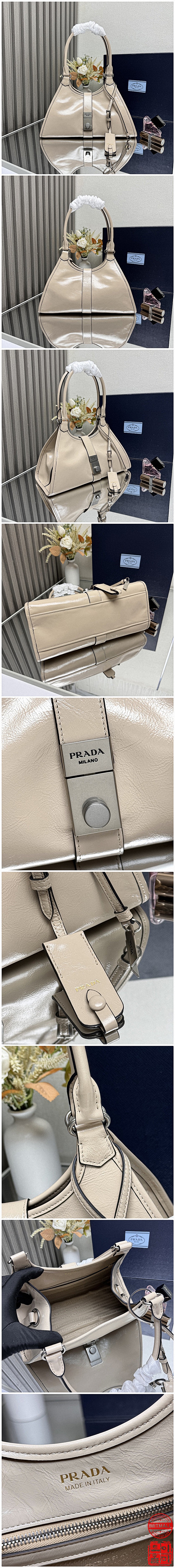 프라다 1BG563 미디움 레더 핸드백 여성용!