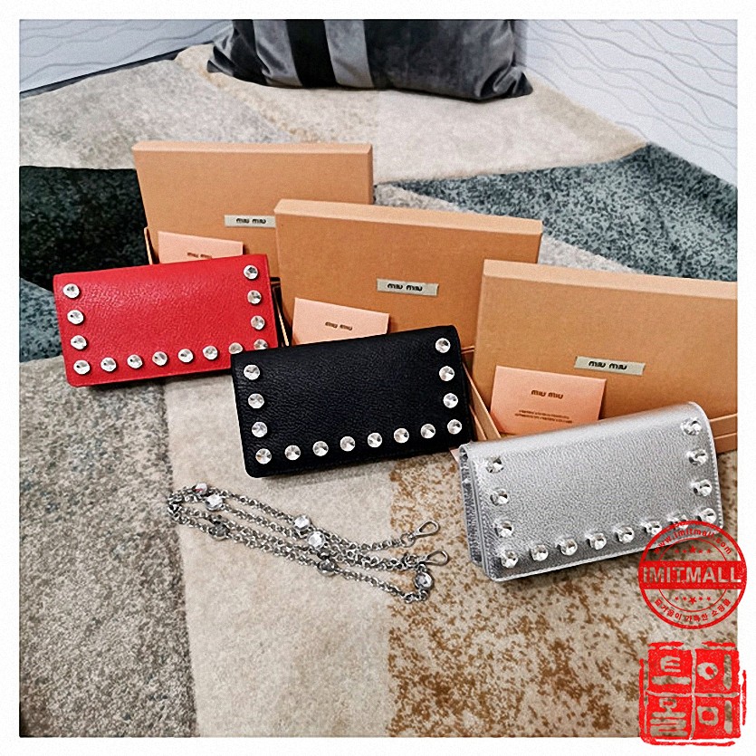 미우미우 크리스탈 진주 플랩 클러치 겸 체인 장지갑