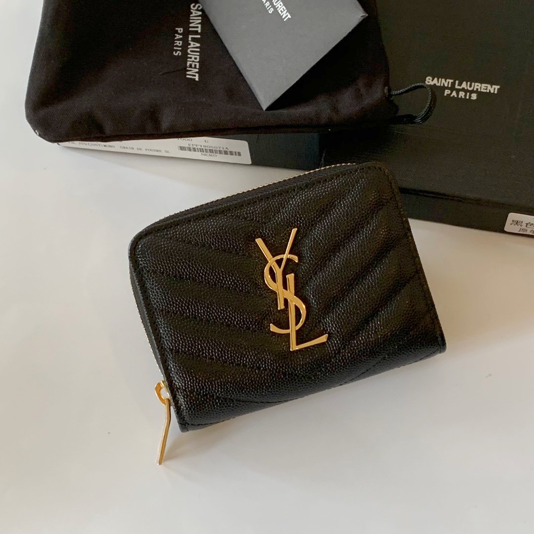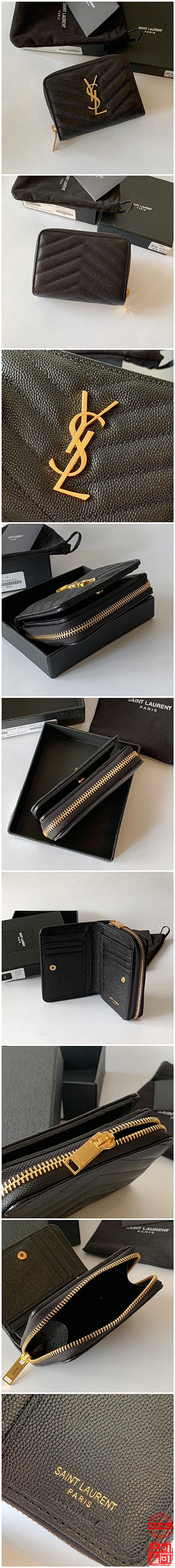 고급스러운 모노그램 레더 생로랑 지퍼 지갑