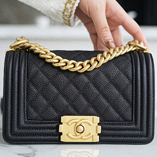 CHANEL 캐비어 보이백 스몰 금장 블랙