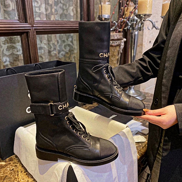 CHANEL 레터링 레이스업부츠