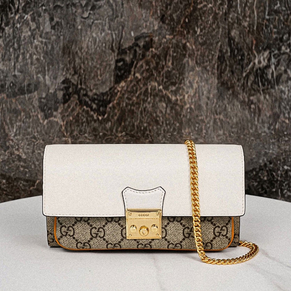 GUCCI 여성 GG 슈프림 패드락 장지갑 체인 숄더백 658226
