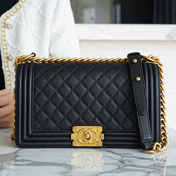 [정품가죽] CHANEL 캐비어 보이백 미듐 블랙