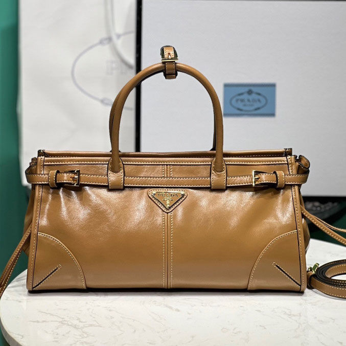 (짧은 손잡이) PRADA 미디엄 가죽 핸드백 1BA426