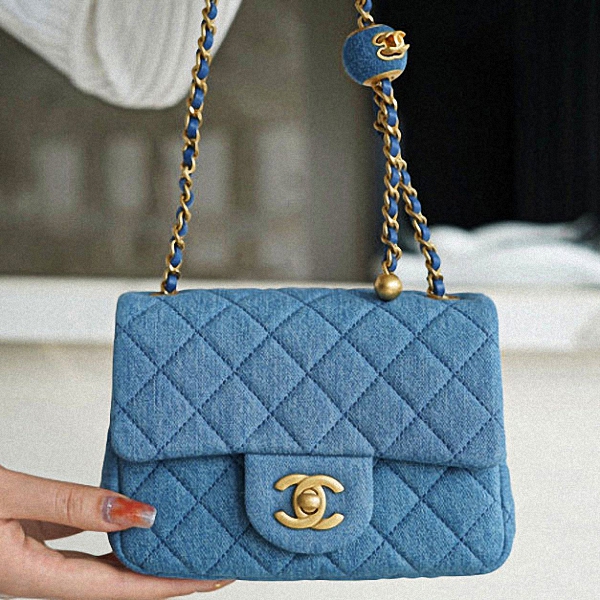 CHANEL 22C CF 데님 클래식 미니골드볼 플랩백