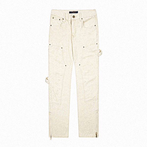 LOUIS VUITTON 남여 공용 화이트 엠보 데님 바지