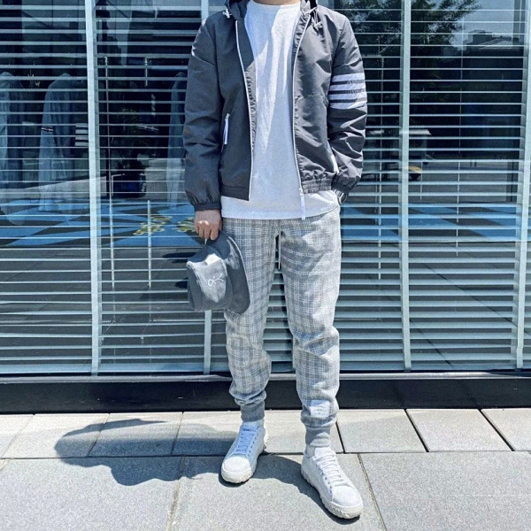 THOM BROWNE 사선 스트라이프 마이크로 체크 자카드 스웻팬츠